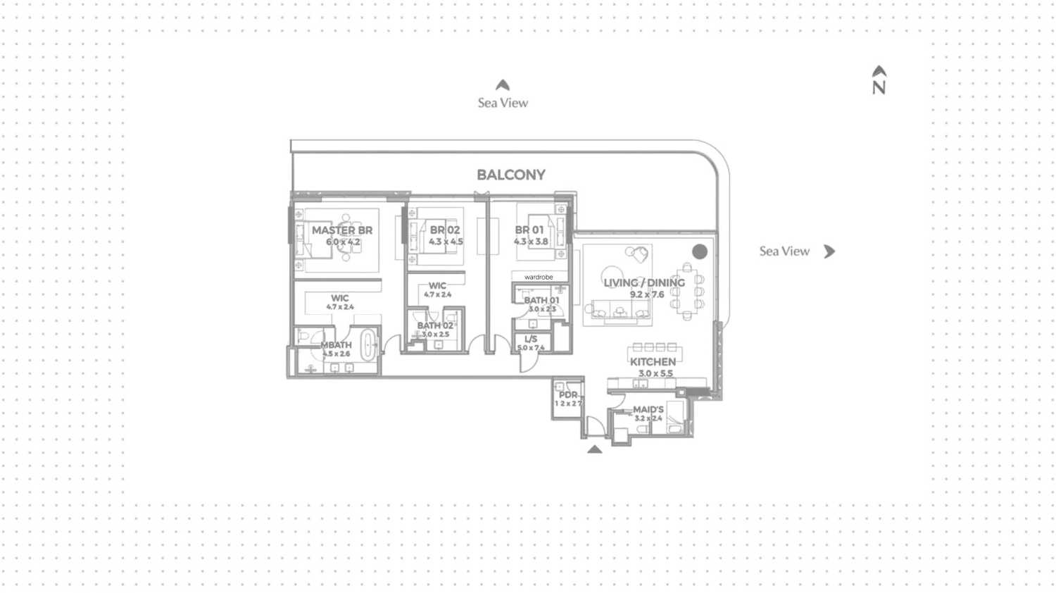 Апартаменты с 2 спальнями в комплексе The Royal Atlantis Residences. Апартаменты с площадью 238 м² на 8 этаже из 46, с отделкой. Окна: панорамные. Вид из окон: view towards the ocean. Реализация проекта запланирована на 1 квартал 2023 года.