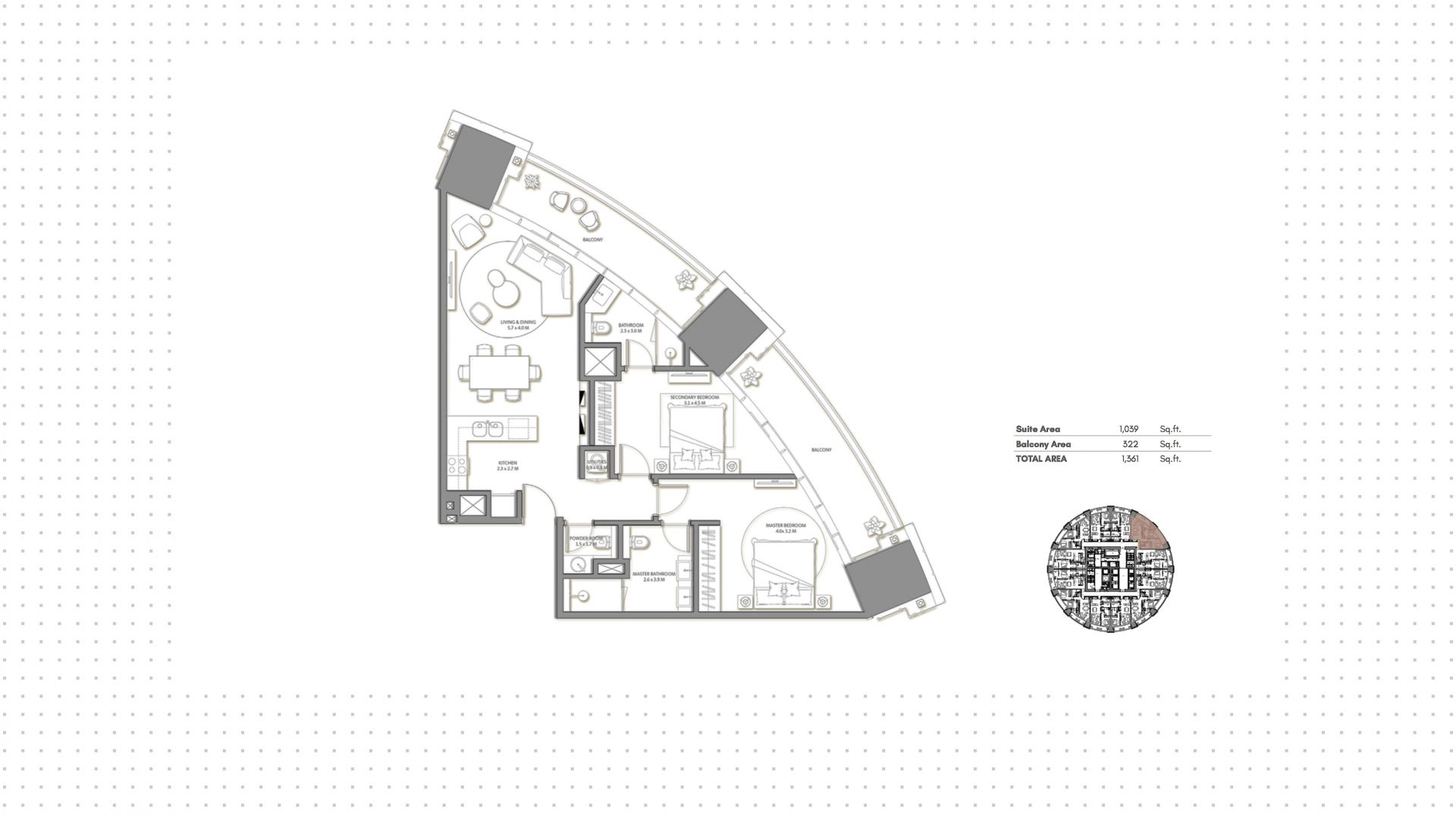 Апартаменты с 2 спальнями в комплексе Palm Beach Towers. Апартаменты с площадью 126 м² на 27 этаже из 59, с отделкой. Окна: панорамные. Вид из окон: palm jumeirah view. Реализация проекта запланирована на 4 квартал 2026 года.