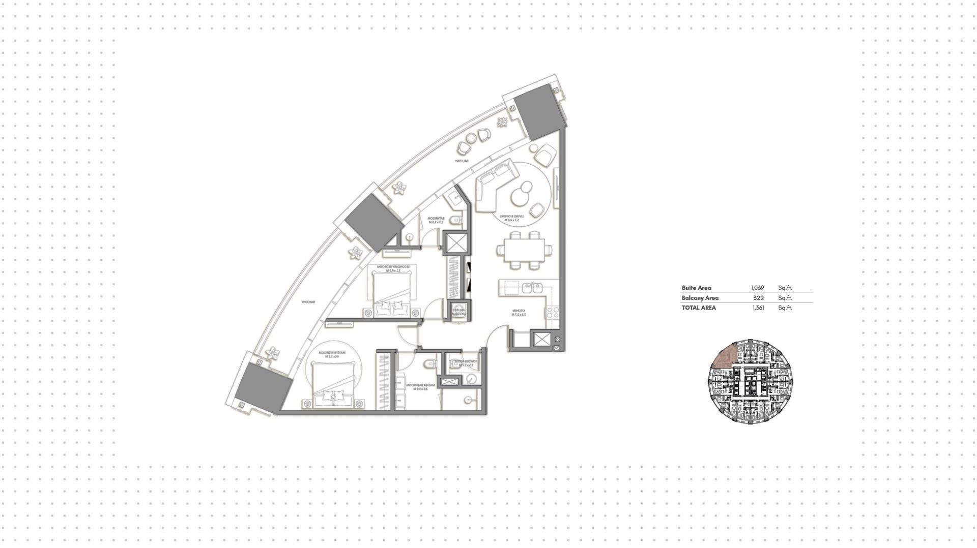 Апартаменты с 2 спальнями в комплексе Palm Beach Towers. Апартаменты с площадью 126 м² на 40 этаже из 59, с отделкой. Окна: панорамные. Реализация проекта запланирована на 4 квартал 2026 года.