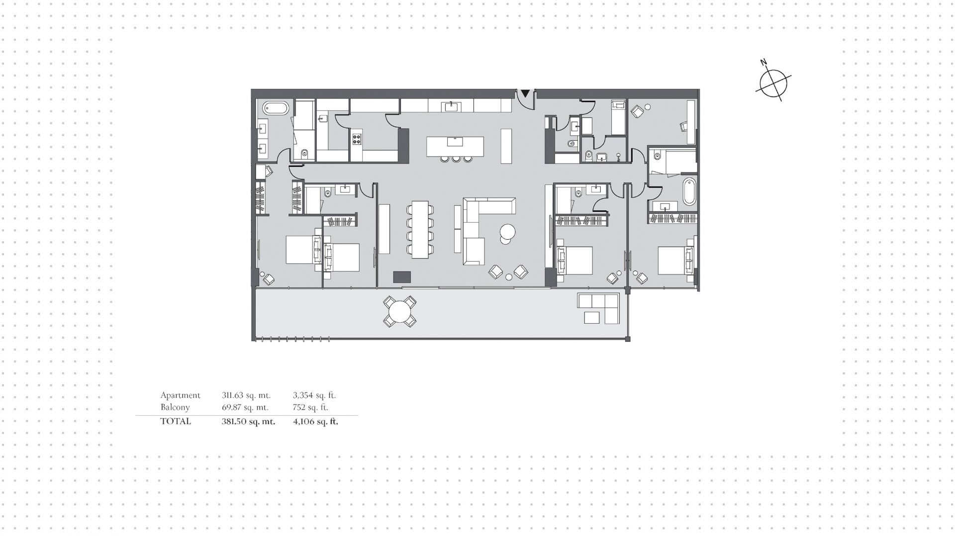 Апартаменты с 4 спальнями в комплексе Six Senses. Апартаменты с площадью 382 м² на 3 этаже из 9, с отделкой. Есть терасса. Окна: панорамные. Реализация проекта запланирована на 4 квартал 2025 года.