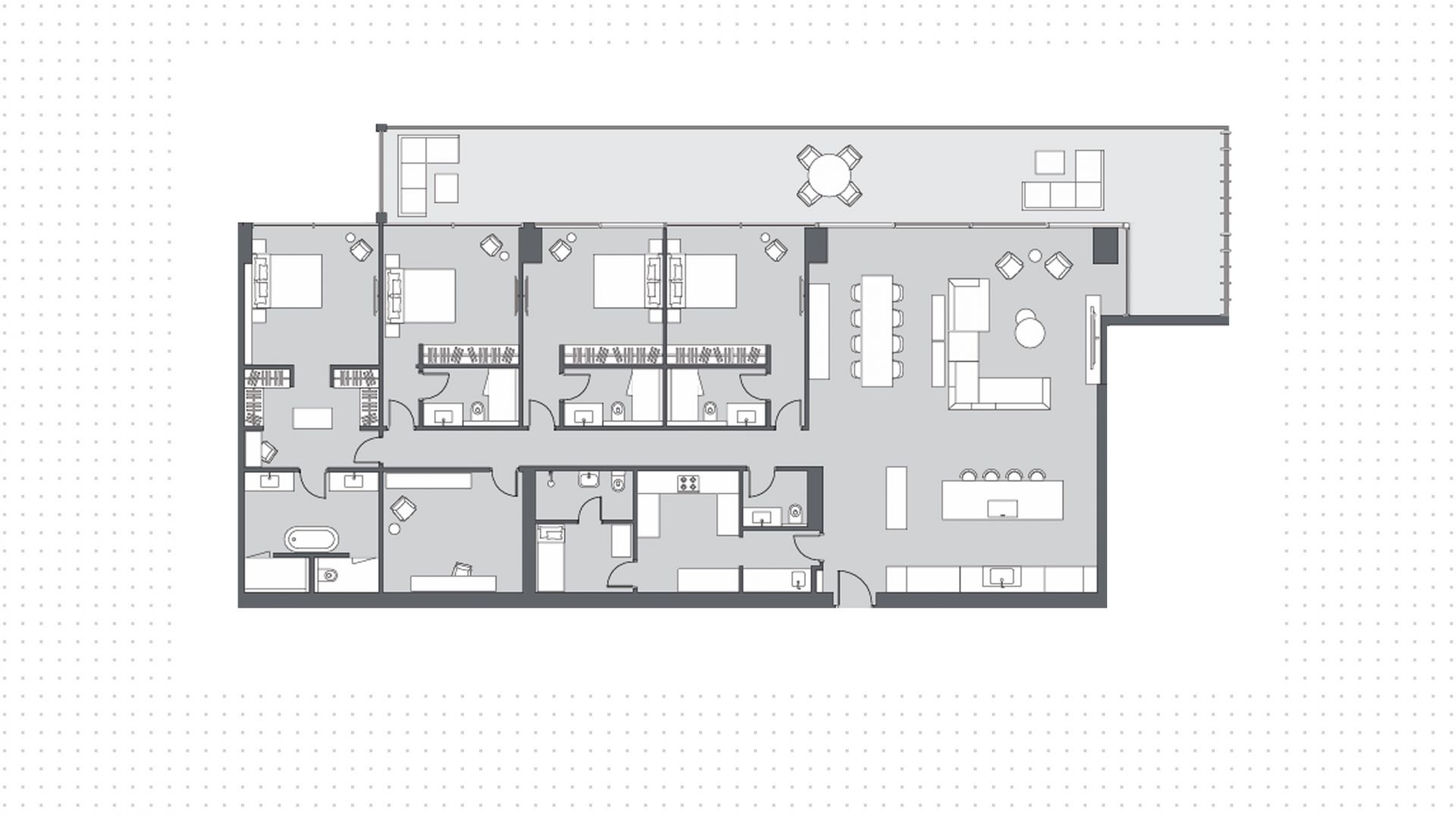 Апартаменты с 4 спальнями в комплексе Six Senses. Апартаменты с площадью 405 м² на 4 этаже из 9, с отделкой. Есть терасса. Окна: панорамные. Вид из окон: palm. Реализация проекта запланирована на 4 квартал 2025 года.