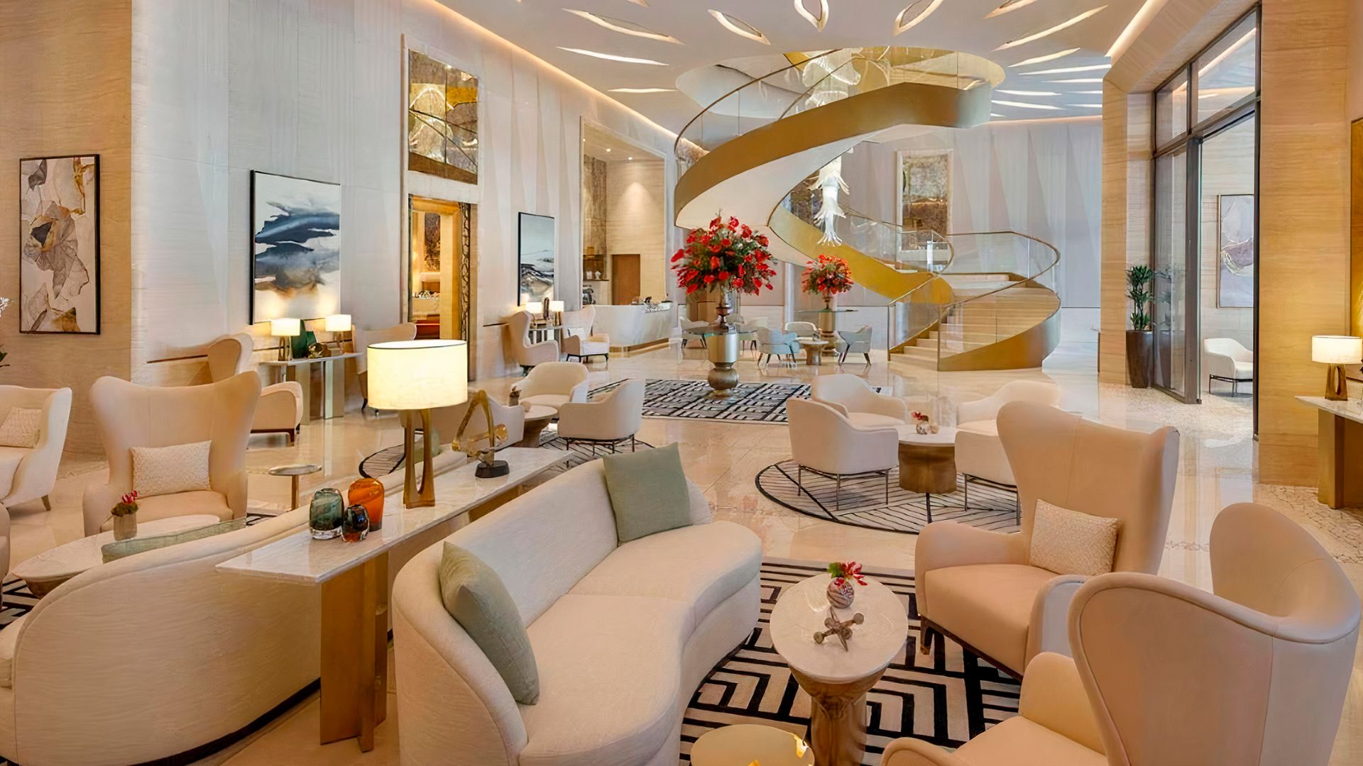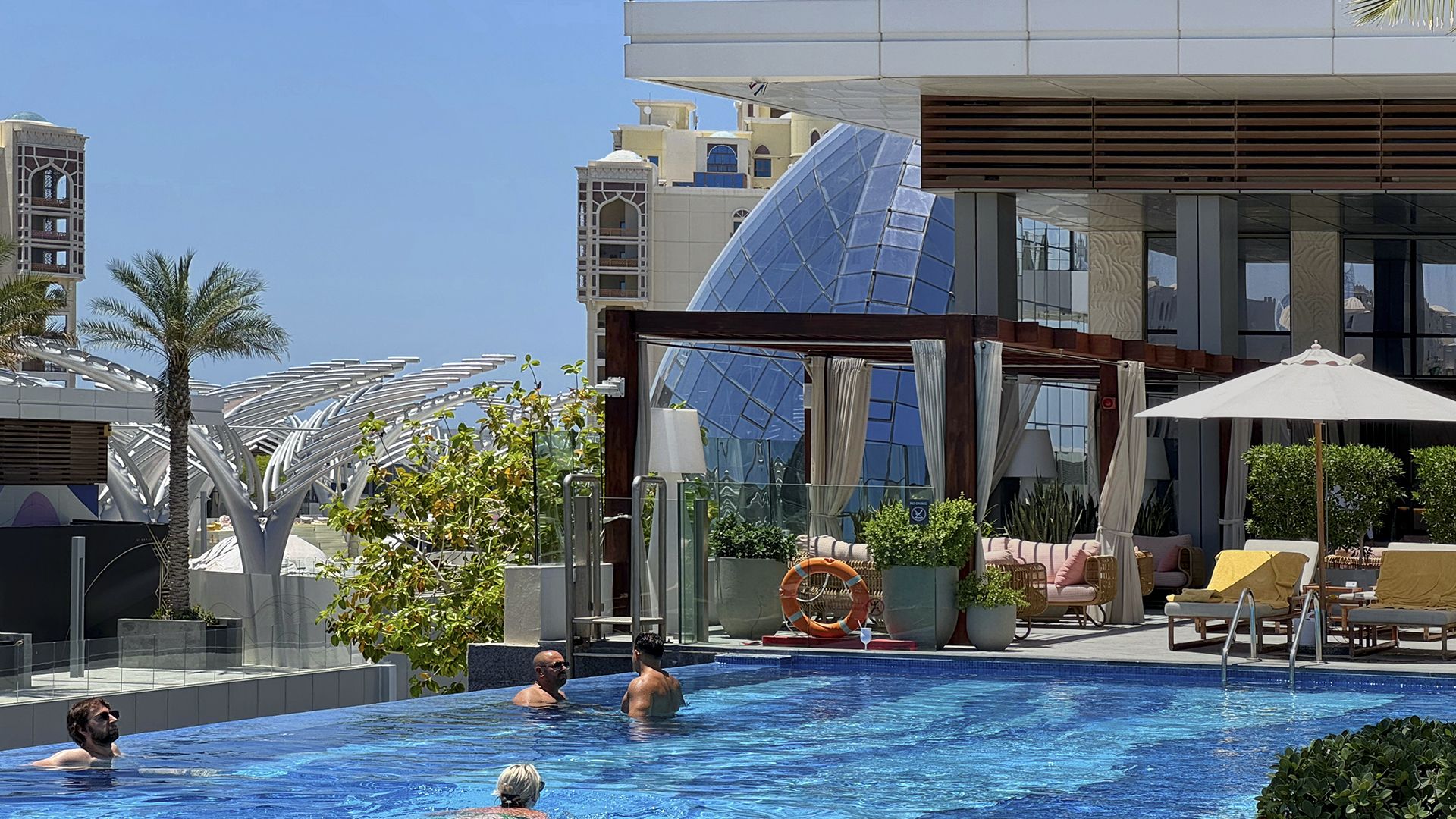 The Palm Tower — 52-этажный пятизвездочный отель и жилой комплекс с 432 апартаментами на знаковом острове Дубая Palm Jumeirah. Проект построен в актуальном минималистичном стиле с большой площадью остекления, открывающая жителям небоскреба захватывающие виды на Персидский залив и достопримечательности города. 18 этажей занимает роскошный отель St. Regis Dubai — The Palm, предлагающий владельцам апартаментов комплекса разнообразные услуги.
